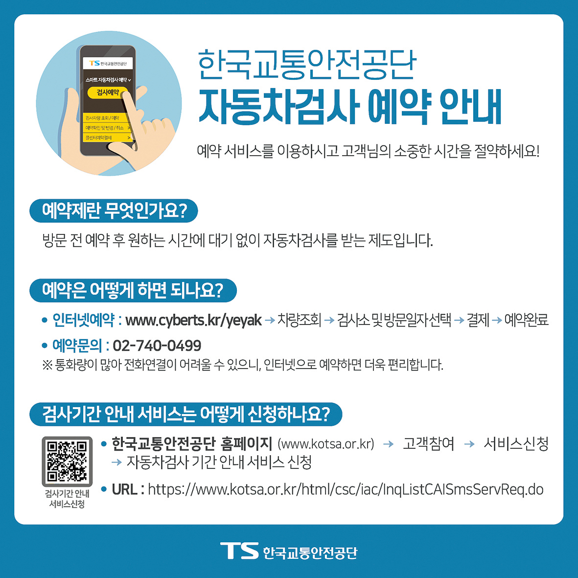 - 자동차검사 통지서를 받으면 기한 내 검사 예약을 진행해야 합니다.